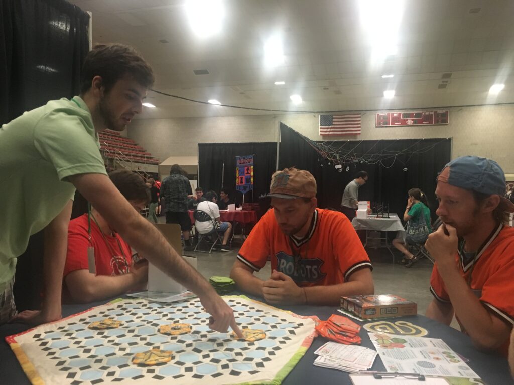 One of the biggest things the panelists discussed was about how often intentional challenges in games are created by establishing rules and then breaking them with the game design, effectively subverting the expectations of the players. This is not always the case, though. Many games are simply made difficult to understand by having complicated, yet established, rulesets (like Everdell), which would still fall under the category of “challenging games.” This idea of challenge also showcases the fact that what is ‘difficult’ or ‘fun’ is entirely player dependent.