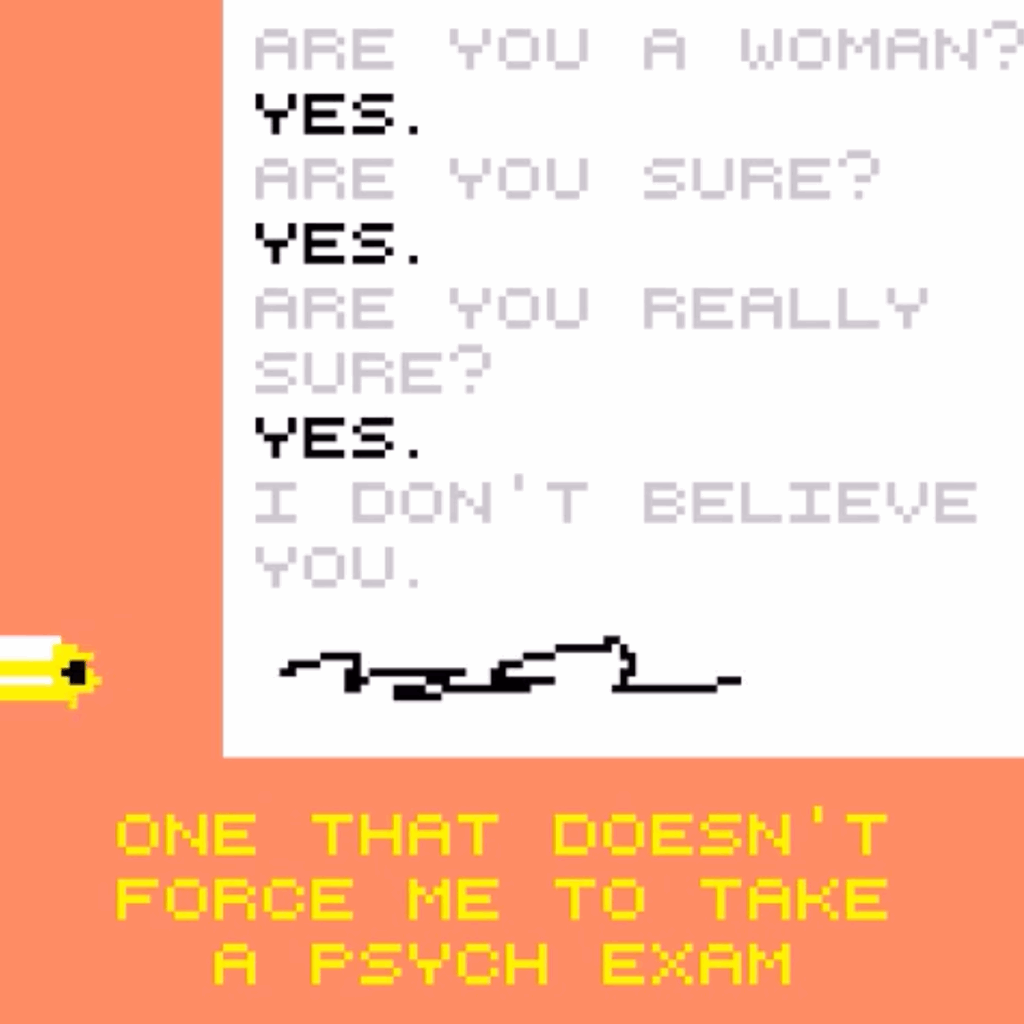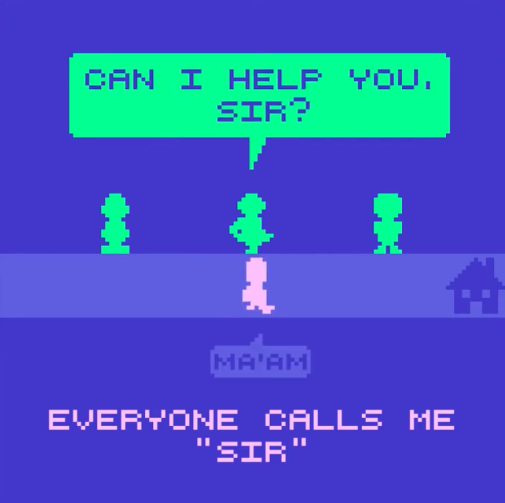 On a micro level, there are many moments of hypervisibility present in Dys4ia’s narrative. Some instances include walking by people who use the wrong pronouns, or even having to plead your case to multiple doctors who “don’t believe you”.