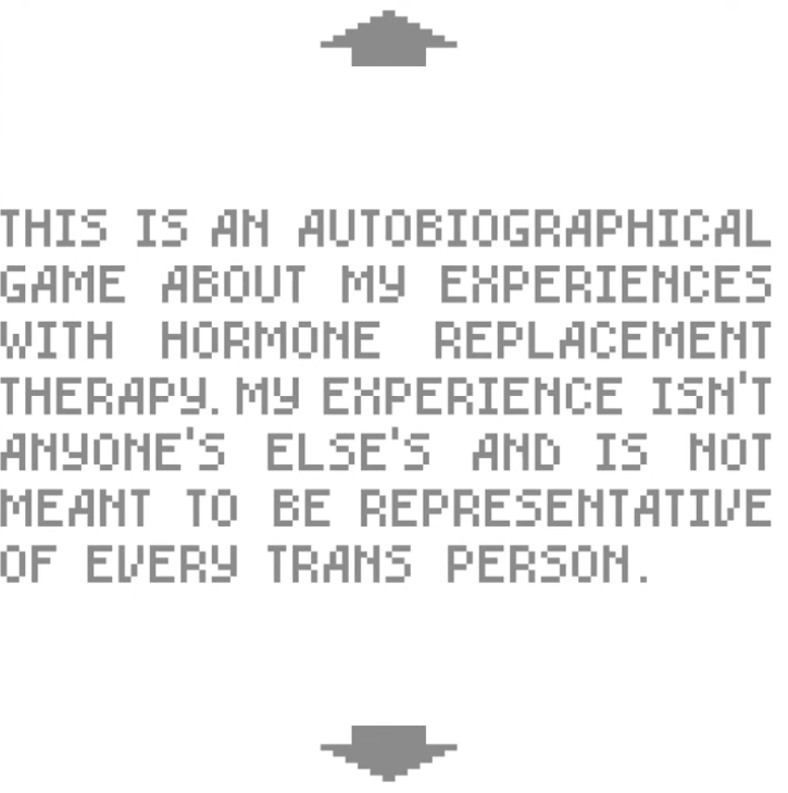 Dys4ia (2012, Anna Anthropy) creates the space for the effect of hypervisibility to be felt and understood by a player through its linear design and straightforward gameplay.