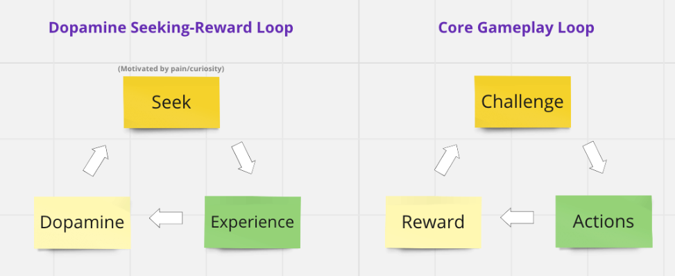 So what actually makes an effective gameplay loop? Well, there are many important aspects, such as culture and early life (Does your family play games, what did you grow up playing, is your family interested in sports, are you playing games out of rebellion, does the game incorporate elements of your culture or another culture that is interesting?) as well as the question of what a player actually finds to be interesting but ultimately the answer boils down to an expected release of dopamine from the player.