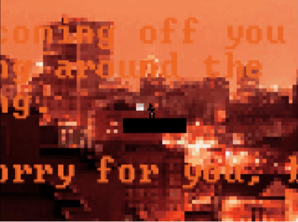 Throughout the game, there is text that is either glitchy, short, or incredibly hard to read. The clearer the text is, the easier the text is to comprehend because this text is the one that Liz Ryerson, or the game, can most easily express. While telling someone “I hate you” or “Go Fuck Yourself” may be harsh, they are short and concise, unlike the lengthy text of a later level.