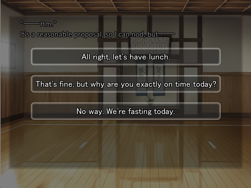 Visual novels (VN) are an odd genre of games. If you’ve played VNs before and have tried explaining what they are to others, they will inevitably ask: “How is that a game?” And in many respects, they are right. VNs do not have many of the things which most people would describe as core to video games. Even walking simulators have more “agency” than VNs because you, the player, is walking and looking and usually interacting with the world in some way. But VNs (at least, most VNs) have one point of interaction, and that’s dialogue choices.