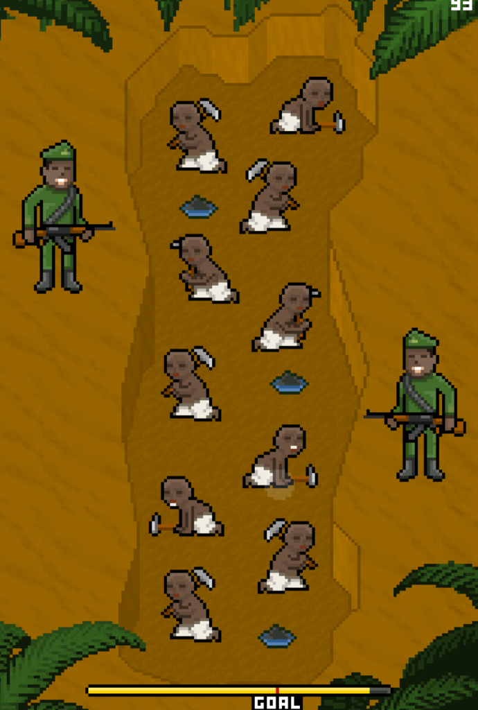 Additionally, I want to highlight a specific quirk of the game. In order to progress and to learn more about these issues, you need to play the game. Specifically, you need to perform simple actions associated with the issue that Phone Story is currently educating you about, such as throwing new phones at customers or catching suicide jumpers. Thus, in order to receive the knowledge that the game is trying to bestow upon you, you need to “participate” in the cycle of violence and abuse. This takes Phone Story beyond a simple pedagogical game, to one that highlights the strength of the phone cycle and the futility of fighting against it. “Obsolescence Mode” also highlights this; play the game to find out how.