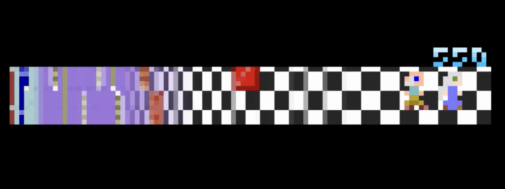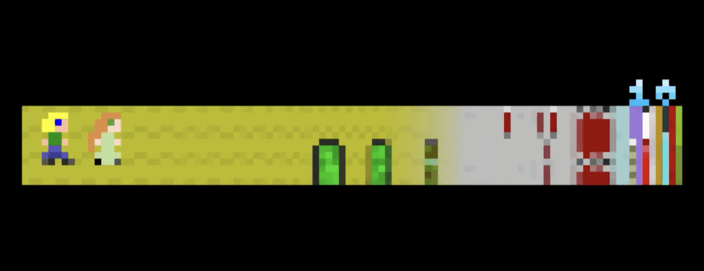 There’s also something subtle happening with representation. The sprites are simple, but they’re unmistakably gendered, echoing early video game archetypes. As the game goes on, though, those distinctions dissolve. The pixels blur, colors fade, and individuality gets absorbed into the slow march of time. Foucault once wrote that power doesn’t always act by force; sometimes it’s the quiet process of learning to live within a system’s limits. Passage forces you to internalize this. Instead of resisting the rules, you accept and keep moving right because there’s nothing else to do.