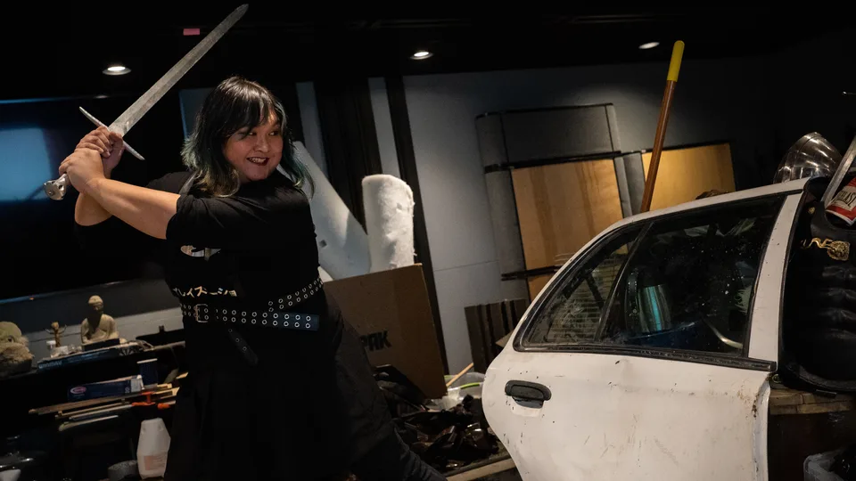 Joanna Fang at work in the Foley studio, performing everyday gestures to create emotional sound.