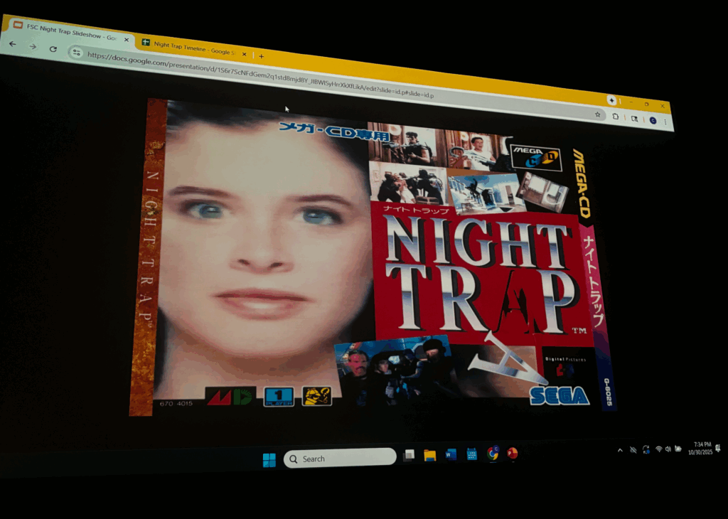 A player is ultimately going to fail in Night Trap. Whether it is not catching enough augers, not switching the code, or not saving key characters. Failure in Night Trap thus invites a player to think systematically. Do you the player keep flipping randomly, engaging in a trial and error method? Do you watch each room in its entirety, taking note of where and when events occur, and then use that knowledge to plan a successful route? Or, is there another way of going about this game? Night Trap asks a player not just to play the game, but to consider how they choose to engage with play.